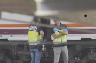 La policía junto al cadáver localizado entre dos trenes cerca de la estación de Santa Justa.. A 16 de octubre de 2023, en Sevilla (Andalucía, España). La Policía Nacional ha confirmado la aparición de un cadáver, pendiente de identificación, entre dos v